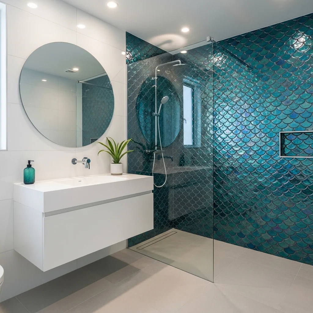 Bold Teal Mermaid Tile for Statement Bathrooms